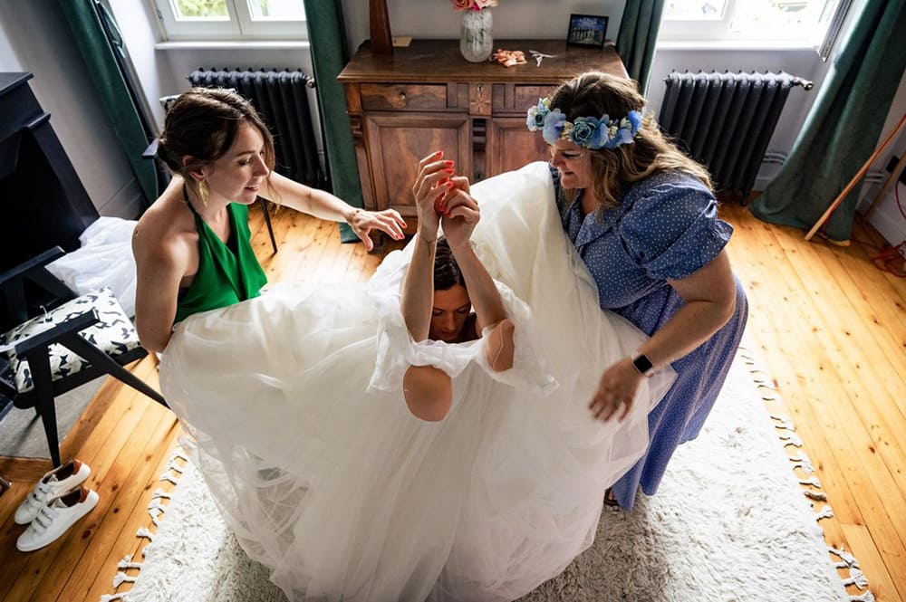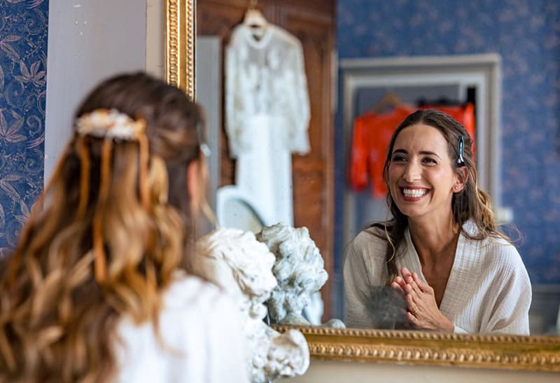 Ce que mes couples retiennent en premier, c’est le fait de m’avoir sentie présente, à leurs côtés, comme une amie qu’on n’a pas besoin de briefer. Celle qui voit les signes de stress avant même qu’ils se disent, celle qui glisse un mot à la maman, ou un regard complice à la témoin. Je suis là pour ça. Et l’appareil photo vient avec.