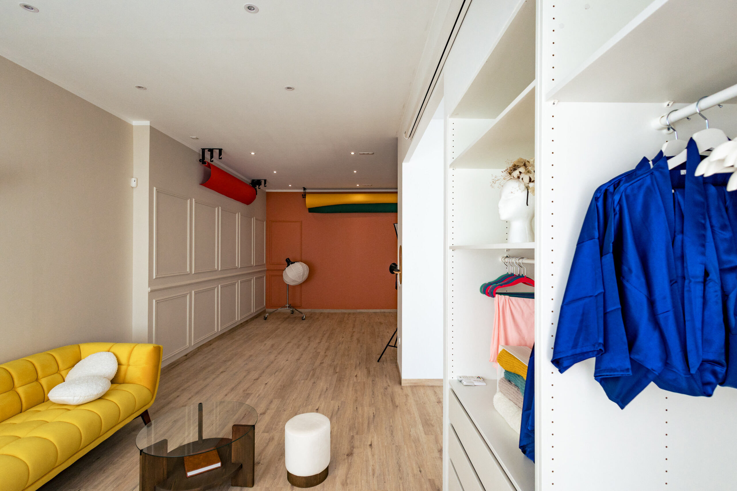 Chaque détail du lieu reflète ma personnalité et mon approche artistique : de la lumière, de la couleur et une touche de jaune pour donner vie à vos images.
